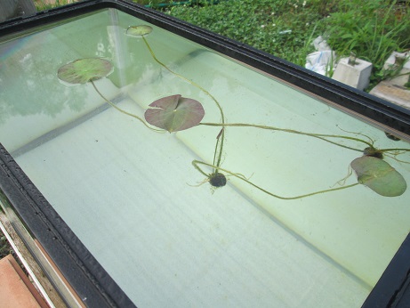 6月24日に目を覚ました古代ハス。 4粒貰った種の3粒が発芽し順調に葉を広げております。残る1粒は どうやら種に穴を空ける時 胚に傷をつけてしまったのか目を覚ましてくれません。 メダカの水槽で大きくなり始めたハスですが、そろそろ泥土に植えなおしてやろうと考えております。