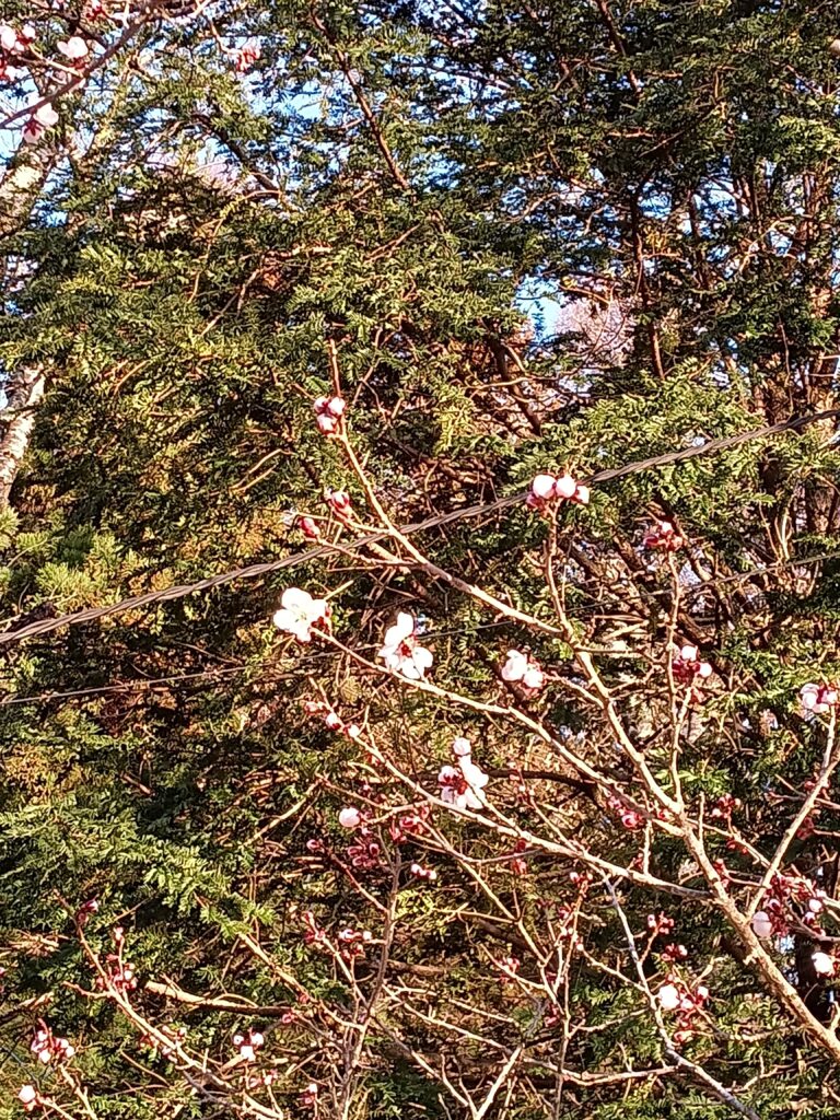 が、寒さに負けずに梅が花を付けました。標高634mの木です。