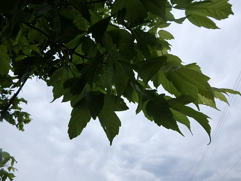 山の木ならば葉をちぎって持ち帰れば図鑑で調べることもできるんですが他人様の庭に生えているのではそうもいきません。 葉をみて感激するのは春の若葉と秋の紅葉。 梅雨時に若葉のような色をしている葉を持つ木の名前がわかったら教えてください。 下の写真は雪深い飯山市で撮ったもので豪雪地や寒冷地でも育つ木のはず。 名前がわかったら私も一本植えてみたいんです。