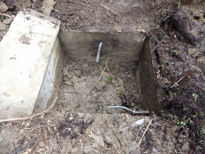 解体工事が終わり井戸ポンプをはずして井戸の深さをみようとしたらポンプの下は固い地面、井戸らしいものは見当たりません。