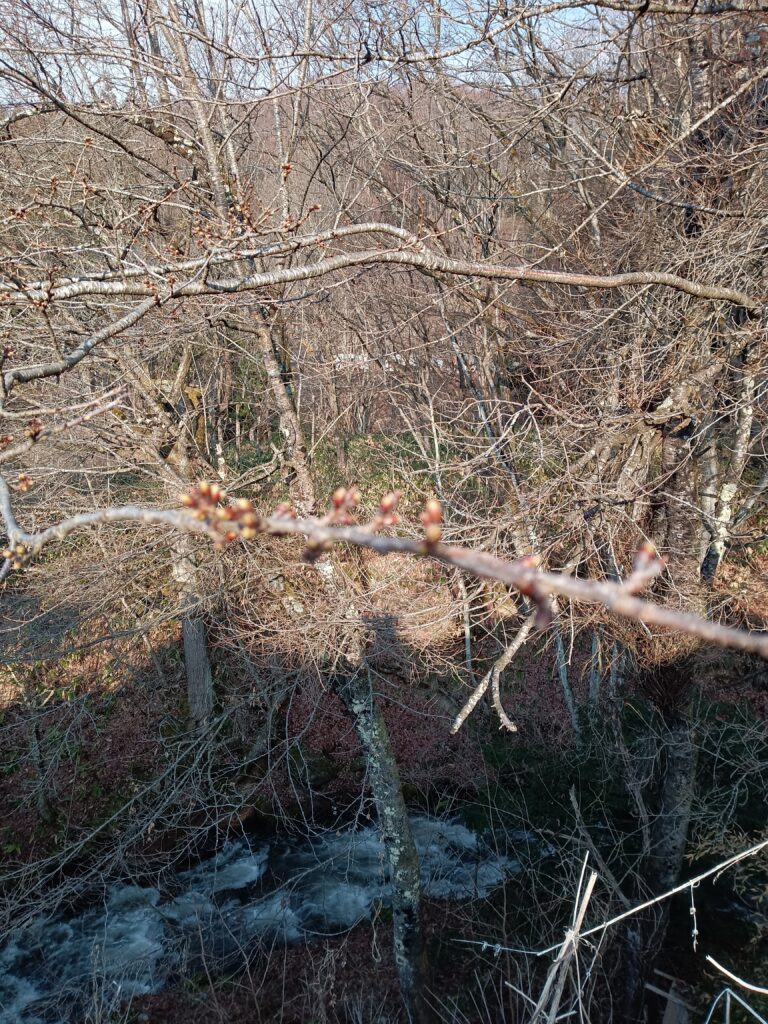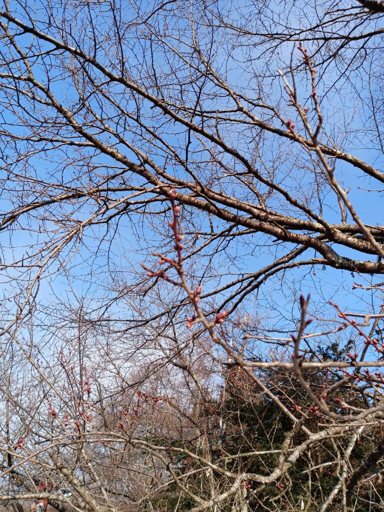 桜の開花は すでに関東平野まで来ているようですが 標高の高い長野県北部は固い蕾。
